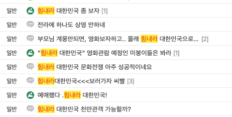 | ▲ '힘내라 대한민국' 영화 상영관 현황 (출처=KOBIS) |