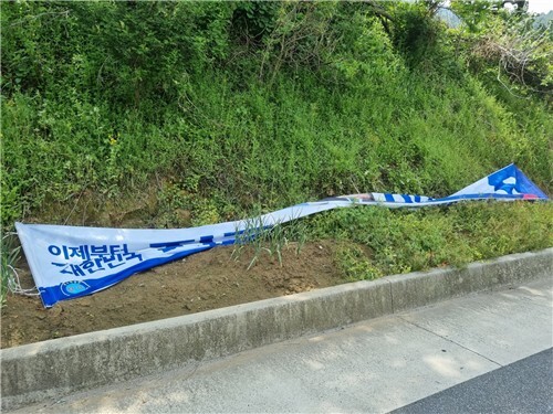 14일 하동경찰서에 따르면 전날 하동 횡천면에 게시된 이 후보의 현수막 끈이 잘린 채 발견됐다.