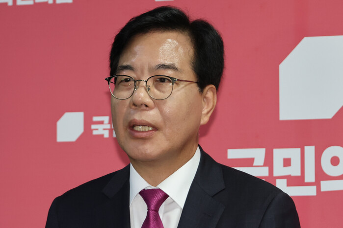 | ▲ 국민의힘 송언석 비대위원장 겸 원내대표가 16일 서울 여의도 국회에서 자신을 비롯한 나경원·윤상현·장동혁에 대해 거취 결정을 요구한 혁신위원회의 인적쇄신안에 대한 입장을 밝히고 있다. 2025.7.16 (사진=연합뉴스) |