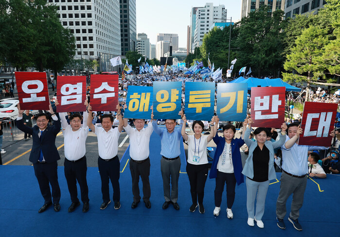 | ▲민주당 지도부 후쿠시마 오염수 규탄대회 모습 (사진=연합뉴스) |