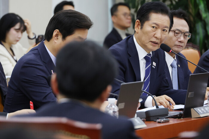 | ▲ 더불어민주당 정청래 대표가 13일 서울 여의도 국회에서 열린 국방위원회 전체회의에서 안규백 국방부 장관에게 내년도 예산안 등과 관련해 질의하고 있다. 2025.11.13 (사진=연합뉴스) |