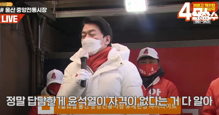 안철수 국민의당 대선후보가 지난 23일 울산을 방문한 연설이 온라인 커뮤니티와 SNS에서 윤석열 국민의힘 대선후보의 무능론을 부각시킨 "역대급 연설"로 뒤늦게 화제가 되면서, 급속히 공유되고 있다.