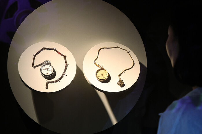 | ▲ 서울 중구 덕수궁 돈덕전에서 열린 특별전 '빛을 담은 항일유산' 언론공개회에서 관계자가'윤봉길 의사와 김구 선생이 의거 당일 맞바꾼 회중시계'를 살펴보고 있다. 2025.8.11 (사진=연합뉴스) |