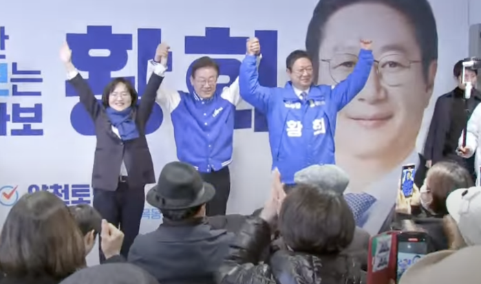 | ▲ 이재명 당대표, 황희 후보 지원 유세. 목동깨비시장 방문 (사진 출처 = 이재명TV) |