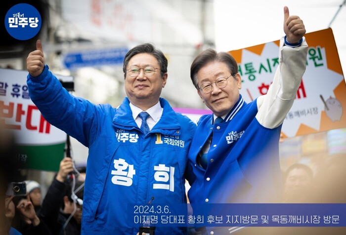 이재명 더불어민주당 대표가 황희 양천구갑 후보의 지원사격에 나섰다 .이 대표는 황 후보의 선거사무소에서 “황희 후보는 뛰어난 역량을 가진 분으로 노무현 정부, 문재인 정부에서 국정 운영에 참여했고, 지역에서도 인정받는 정치인”이라고 말했다.