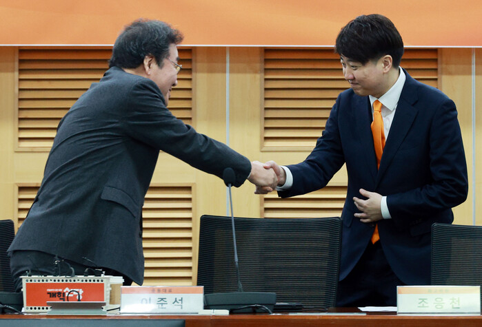 | ▲악수하는 이낙연 이준석 공동대표 (사진=연합뉴스) |