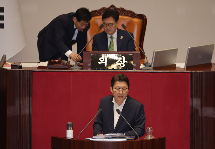 | ▲ 국회 본회의에서 '방송3법(방송법·방송문화진흥회법·한국교육방송공사법 개정안)' 중 방송법 일부개정법률안이 상정되자 국민의힘 신동욱 의원이 무제한토론(필리버스터)에 나서고 있다. 2025.8.4 (사진=연합뉴스) |