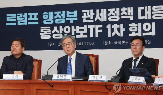 이에 더불어민주당이 한 권한대행을 겨냥해 "대미 관세 협상에서 아무런 반대급부 없이 미국에 퍼주기만 하면 안 된다"고 경고했다.
