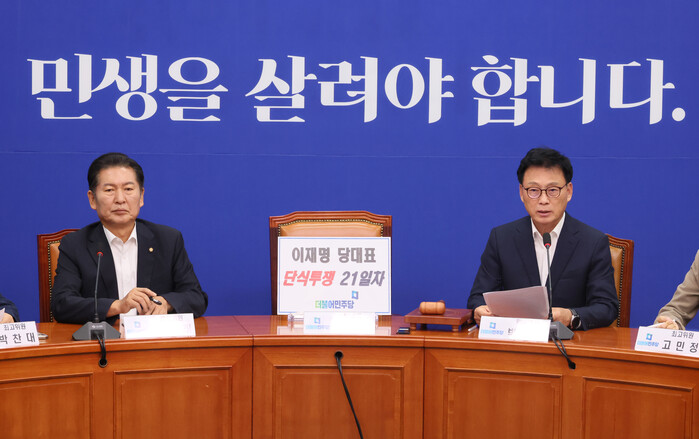 | ▲이재명 당대표 단식투쟁 21일차 최고위원회 모습 (사진=연합뉴스) |