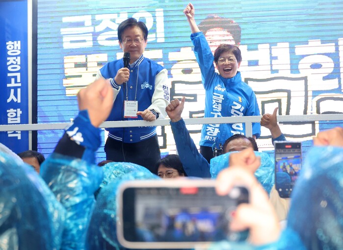 | ▲ 이재명 대표와 김경지 후보(사진=연합뉴스) |