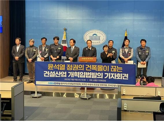 민주당 을지로위원회는 이날 국회 소통관에서 기자회견을 열어 "건설산업에 만연한 불법하도급과 임금체불, 고용불안, 안전사고 등의 현실을 바꾸려면 건설산업 개혁을 위한 입법이 필요하다"고 말했다.