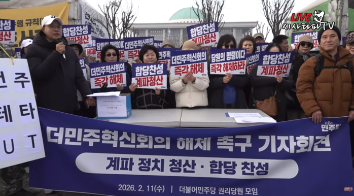 더불어민주당 내부 합당 논쟁이 이어지는 가운데 전국 각지에서 모인 권리당원들이 계파 정치 청산과 당원 주권 수호를 요구하며 더민주혁신회의 해체 촉구 기자회견을 열었다. 이들은 1만3000여 명의 서명 명단과 메시지를 당에 전달하며 공식 대응을 요구했다.