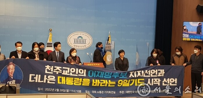2천명의 천주교인들이 더불어민주당 이재명 후보 지지는 물론 당선을 위한 9일 기도 시작을 선언했다.