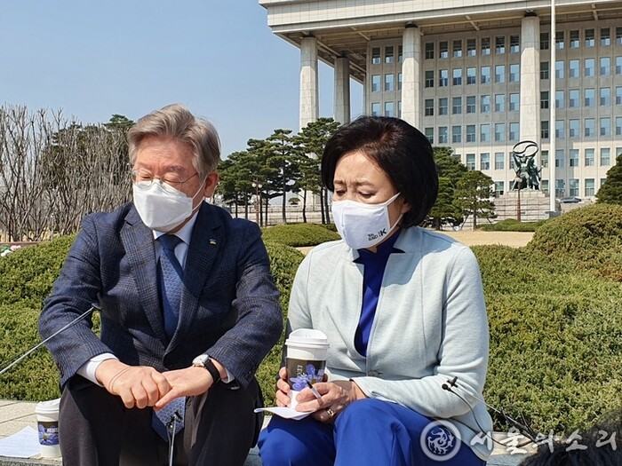 | ▲ 지난 5월 국회에서 만난 이재명 경기도 지사와 박영선 전 장관 © 윤재식 기자 |