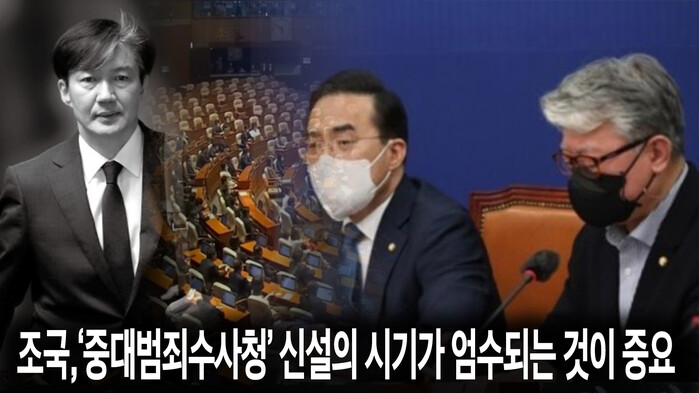 22일 조국 (전)법무부장관은 박병석 의장안을 여야 정당이 추인한 것에 대해 ‘중대범죄수사청’ 신설의 시기가 엄수되는 것이 중요, 검찰과 국힘의 지연 작전이 예상된다고 말했다.
