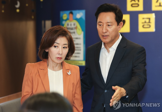 | ▲ 나경원 국민의힘 대선 예비후보와 오세훈 서울시장 (사진=연합뉴스) |