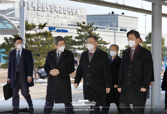 문 대통령은 “해안 철도망을 완성하고 한반도를 남북으로 잇는 동해북부선의 복원으로, 강원도는 새로운 모습으로 도약하고 남북 경제협력의 기반도 갖추게 될 것”이라며 기대감을 드러냈다.