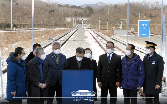 문재인 대통령은 오늘 새해 첫 현장 방문으로 강원도 고성군의 제진역을 찾아 “1967년 양양-속초 노선 폐지 후, 동해선에서 유일하게 철도가 없었던 동해북부선이 55년 만에 복원된다”며 동해선 강릉-제진 철도건설 착공을 축하했다.