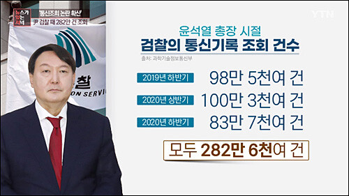 -윤 후보가 검찰총장으로 재직,‘통신자료 조회’모두 282만6118건.