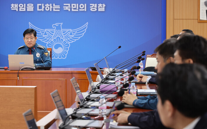 이호영 경찰청장 직무대행은 28일 정례 기자간담회에서 ‘검찰이 전씨 자택을 압수수색하면서 발견한 경찰 명함에 대한 내부 확인이 이뤄지고 있느냐’는 질문에 “아직 (내부) 감찰은 하지 않고 있다”며 “어느 정도 수사 윤곽이 나오면 감찰이 이뤄지는데, 아직 사실 확인이 안 된 상태”라고 말했다.