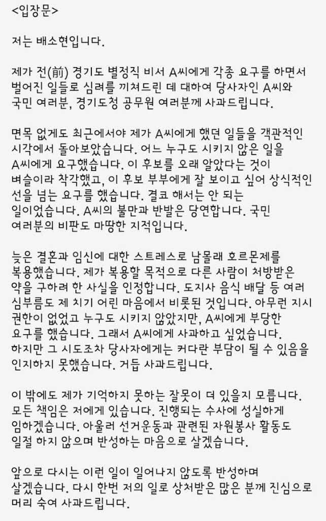 | ▲ 별정직 5급 배 모씨 입장문 |