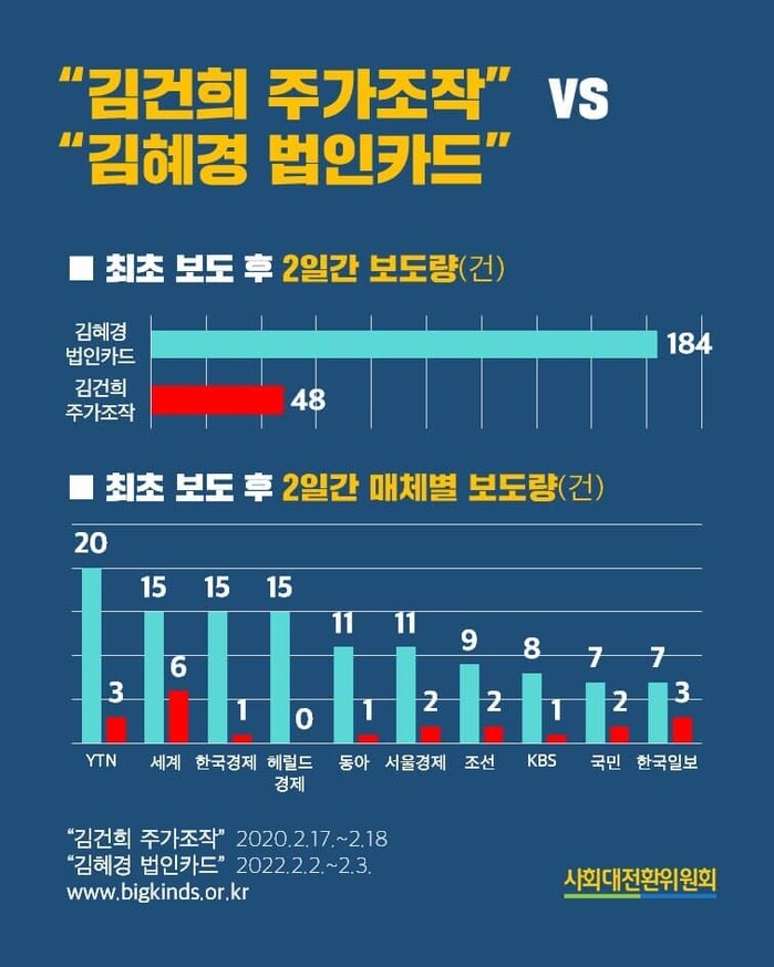 배 모씨의 입장문에 있듯이 개인카드로 결재를 하고, 김혜경 씨에게 잘 보인 뒤 결국 관행대로 법인카드로 결제했을 가능성이 매우 크다는 사실을 알 수 있다. 하지만 이러한 개연성에 대해서는 보도하지 않았다.