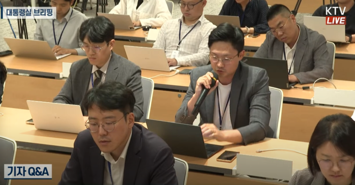 | ▲ 생중계되는 대통령실 브리핑에 질의하는 기자 2025.6.24 (출처=KTV 이매진) |