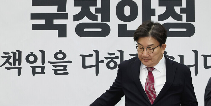 권 원내대표는 16일 국회에서 열린 기자간담회에서 헌법재판소의 윤석열 탄핵심판과 관련해 "우리 당의 공식 입장은 헌재의 판단 결과에 승복하겠다는 것"이라고 말했다.