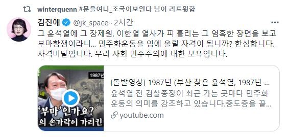 -민주화운동을 입에 올릴 자격이 됩니까?