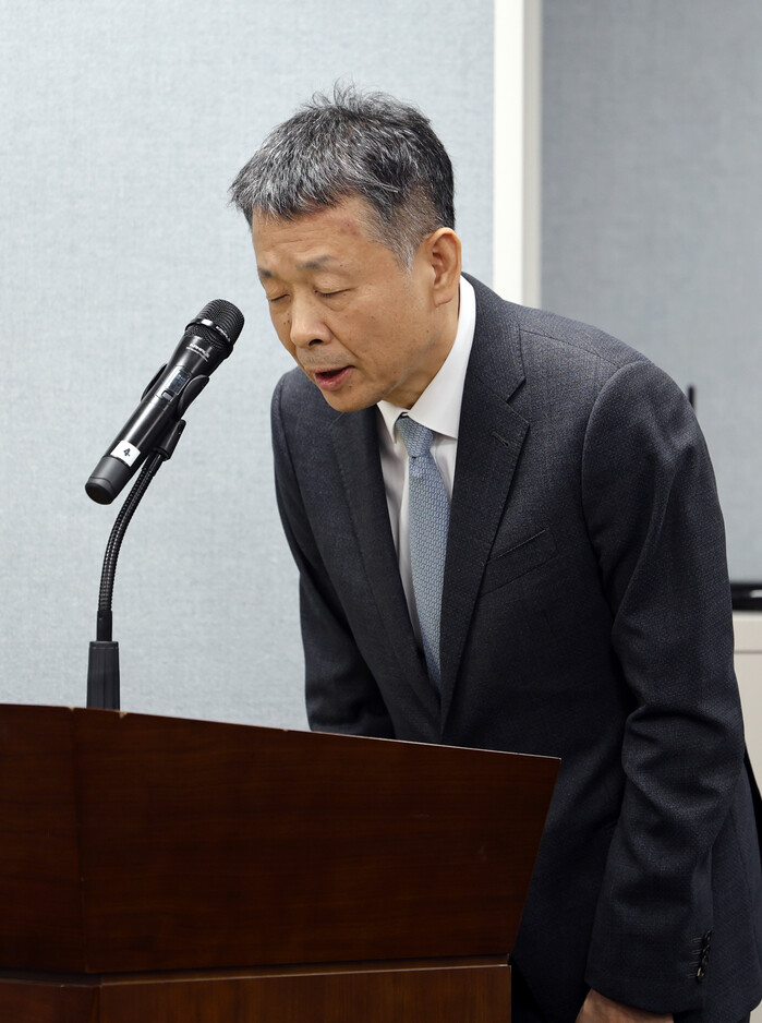| ▲ 국민연금공단에서 열린 국회 보건복지위원회 국정감사에서 김광일 MBK파트너스 부회장이 홈플러스 사태에 대해 고개를 숙이고 있다. 2025.10.24 (사진=연합뉴스) |