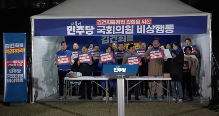 | ▲ 김건희 특검법 관철을 위한 민주당 국회의원 비상행동 2일차 (출처=델리민주) |