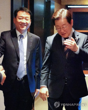 | ▲ 13일 회동한 더불어민주당 이광재 전 사무총장과 이재명 대표 (사진=연합뉴스) |