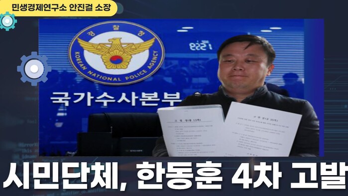 개혁국민운동본부, 민생경제연구소 등 5개 시민단체들은 20일 한동훈 법무부 장관과 윤석열 대통령을 직권남용권리행사방해죄 등으로 경찰청 국가수사본부에 고발장을 접수했다고 밝혔다.