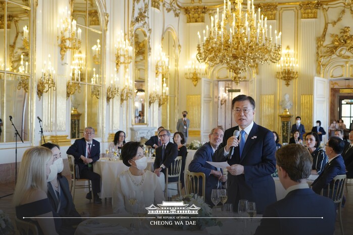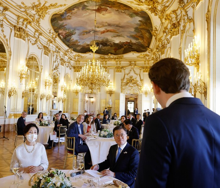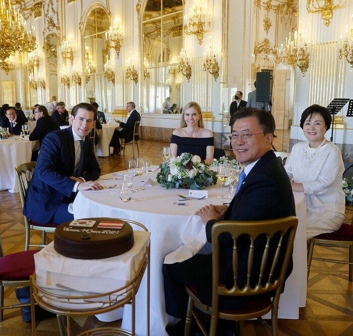 오스트리아를 국빈방문 중인 문재인 대통령은 6월 14일(현지시간) 세바스티안 쿠르츠(Sebastian Kurz) 총리 주최 환영오찬에 참석했다. 오찬 장소인 쇤브룬궁 1층 ‘그로세 갈레리에’(Große Galerie)는 이와 같은 행사 장소로 잘 활용되지 않다가, 40년 만에 처음으로 문재인 대통령과의 오찬 장소로 사용됐다. 이곳은 1961년 구소련 흐루시초프 서기장과 미국 케네디 대통령이 정상회담을 가진 장소이기도 하다.