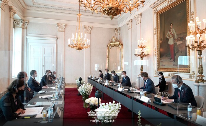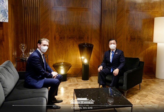 문 대통령과 쿠르츠 총리는 이날 회담을 통해 양국 관계 발전 및 실질협력 증진 방안, 코로나 19 기후변화 등 글로벌 현안, 한반도 정세 등에 대해 심도 있는 대화를 나눈 뒤 이같이 밝혔다.