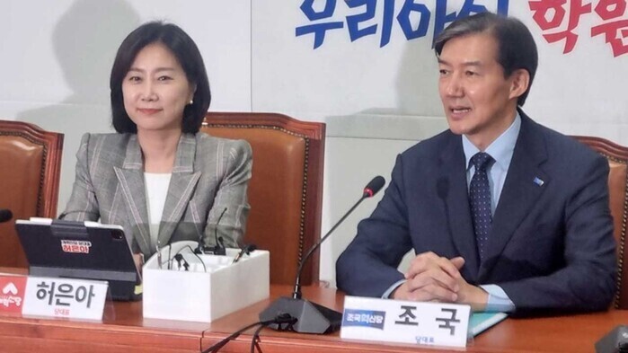 | ▲ 허은아 대표와 조국 대표(시진=연합뉴스) |