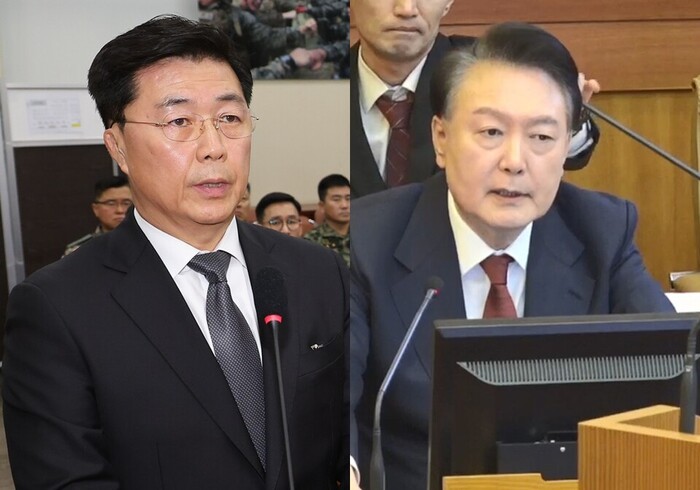 한편 홍 전 차장은 법정에 들어오자마자 윤석열 쪽을 바라보며 90도로 인사부터 했지만, 윤석열은 정면만 응시한 채 눈을 마주치지 않았다. 이후에도 계속 홍 전 차장의 발언에 불편한 심기를 은연중 드러냈다.