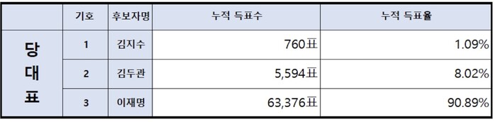 | ▲2주차 누적 당대표 득표수 및 득표율 화면 캡쳐 |