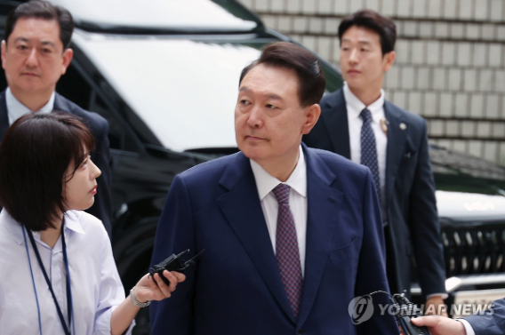 | ▲ 윤석열이 서울중앙지방법원에서 열린 내란 우두머리 혐의·직권남용 권리행사 방해 혐의 사건 7차 공판에 출석하고 있다. 2025.6.16 (사진=연합뉴스) |