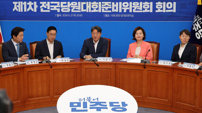 민주당은 전당대회 공식 명칭을 '제1차 정기전국당원대회'로 확정하고, 제주도를 시작으로 전국 순회 경선을 거친 뒤 내달 18일 서울 송파구 올림픽체조경기장에서 열리는 전당대회에서 새 지도부가 출범한다.