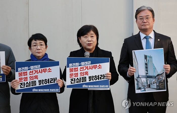 민주당 '명태균 게이트 진상조사단'(단장 서영교)은 28일 국회에서 기자회견을 열어 "명씨와 윤 대통령 부부의 연관성을 규명하고, 불법 여론조사 혐의 및 관련 의혹에 대한 철저한 진상 조사를 촉구하기 위해 창원지검에 고발장을 접수한다"고 밝혔다.