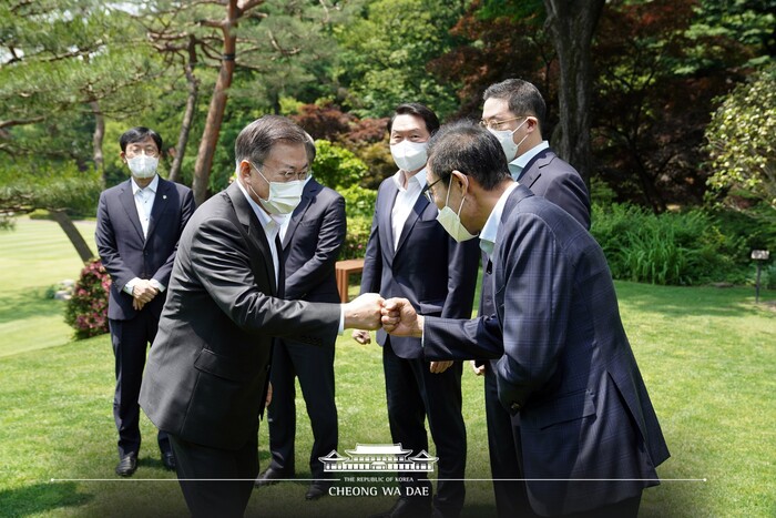 아울러 기업의 앞서가는 결정이 없었다면 오늘이 없었다며 정부도 역할을 했지만, 기업도 큰 역할을 했다고 기업의 노고를 치하했다. 한편 문 대통령은 이재용 사면과 관련한 건의를 경청한 후 “고충을 이해한다”고 답했다.
