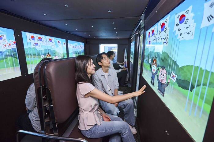 | ▲ SK텔레콤은 독립기념관과 광복 80주년을 맞아 AI 기술로 복원한 독립운동가들의 생생한 모습과 목소리를 담은 특별 영상을 공개한다고 14일 밝혔다. 사진은 친환경 확장 현실(XR) 체험 셔틀 내부 모습. 2025.8.14 (사진=연합뉴스) |