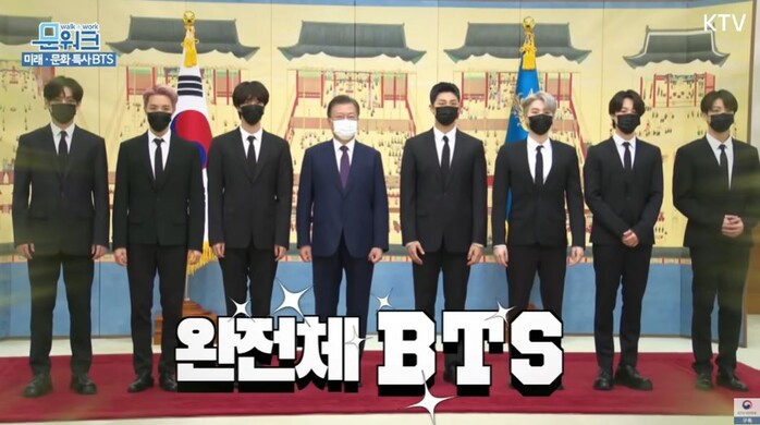 문 대통령은 “여러모로 참 고마운 것이 K-팝, K-문화의 위상을 더없이 높이 올려줌으로써 대한민국의 품격을 아주 높여 주었다”면서 외국 정상들을 만나면 BTS 이야기로 대화를 시작하는 경우가 많아 외교활동이 수월해졌다는 경험을 공유했다.