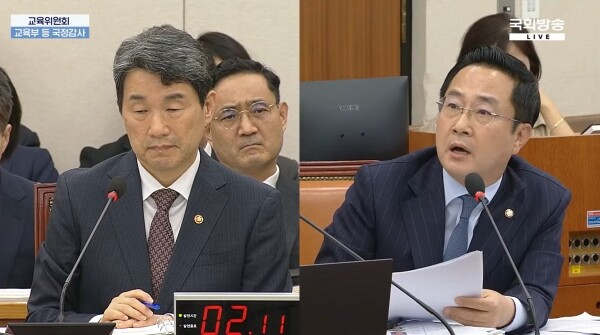 | ▲ 이주호 교육부장관과 박성준 더불어민주당 의원. 국회 교육위원회 국정감사 (국회방송 캡처) |
