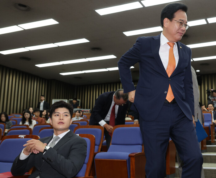 | ▲ 국민의힘 송언석 원내대표가 27일 서울 여의도 국회에서 열린 의원총회에 참석하고 있다. 왼쪽은 김용태 비상대책위원장. 2025.6.27 (사진=연합뉴스) |