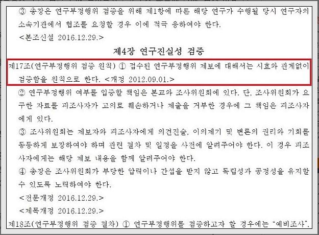 -학내 부칙조항 경과기간 규정일뿐,접수된 부정행위제보는 시효와 관계없이 검증이 원칙.