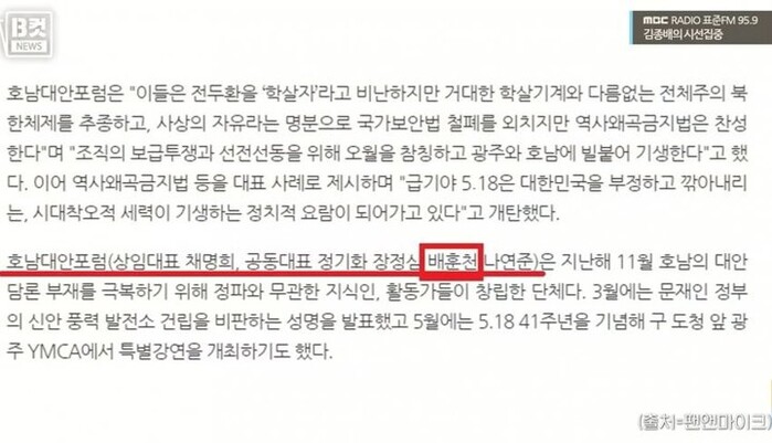 15일 MBC 라디오 '김종배의 시선 집중'에서 배훈천 씨의 정체와 조선일보의 의도가 고스란히 드러났다. '헬 마우스' 임경빈 작가가 출연해 매체의 기사 의도를 두고 속살을 샅샅이 파헤친 것이다. 헬 마우스는 가짜뉴스 비판을 목적으로 하는 유튜브 채널로 임경빈 씨는 15년 동안 시사 보도 프로그램을 만들던 방송작가로 알려져 있다.