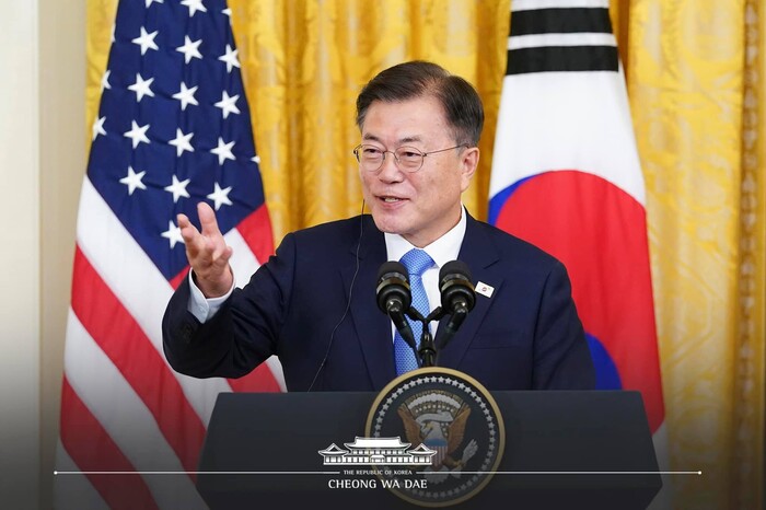 무엇보다도 우리는 새로운 시대에 우리의 관계에 활력을 불어넣고 시대에 발맞춰나가겠다는 결의를 함께하고 있다. 바이든 대통령은 양국 간 파트너십의 새로운 장을 열어나가기 위해 대한민국의 문재인 대통령을 워싱턴에서 맞이하게 된 것을 영광으로 생각한다.