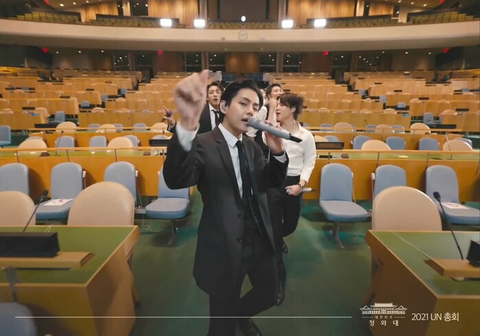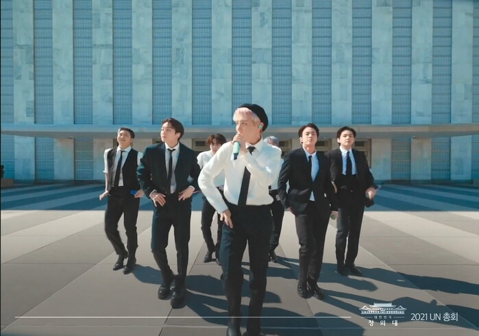 RM은 "세상이 멈춘 줄 알았는데 조금씩 앞으로 나가고 있다. 모든 선택은 엔딩이 아니라 변화의 시작이라고 믿는다"라며 "모두에게 미리 전하고픈 저희의 웰컴 인사"라면서 'Permission to Dance(퍼미션 투 댄스)' 특별 영상을 소개했다. 뮤직비디오 형태의 특별영상은 유엔총회장을 비롯한 유엔본부 등을 배경으로 사전 제작됐다가 이날 유엔의 유튜브 채널과 웹티비 등을 통해 전 세계로 송출됐다.